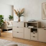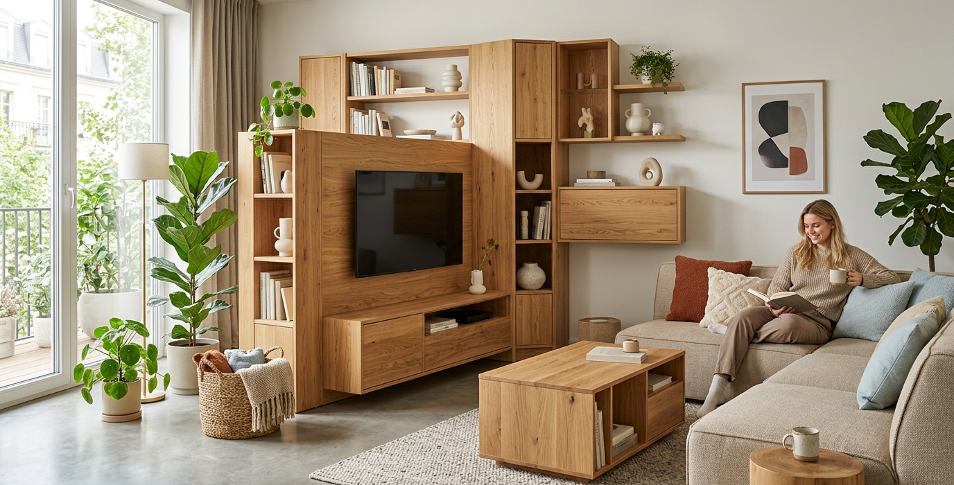 Minimalistyczne meble z drewna o czystych liniach w trendach 2026 do salonu